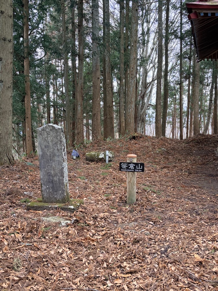 この山域全体は七ツ森と呼ばれており、今回登った笹倉山に加え、撫倉山(359m)、松倉山(291m)、大倉山(327m)、鉢倉山(289m)、鎌倉山(313m)、遂倉山(とがくらさん・308m)といった7つの尖った山が遠目でもわかり特徴的です。それぞれの山頂には薬師如来石像が祀られていて、毎年4月8日薬師如来石像を1日でお参りする「七薬師掛け」が今も受け継がれているそうです。