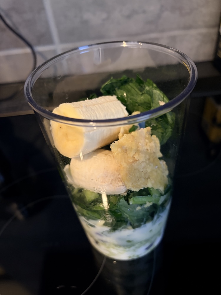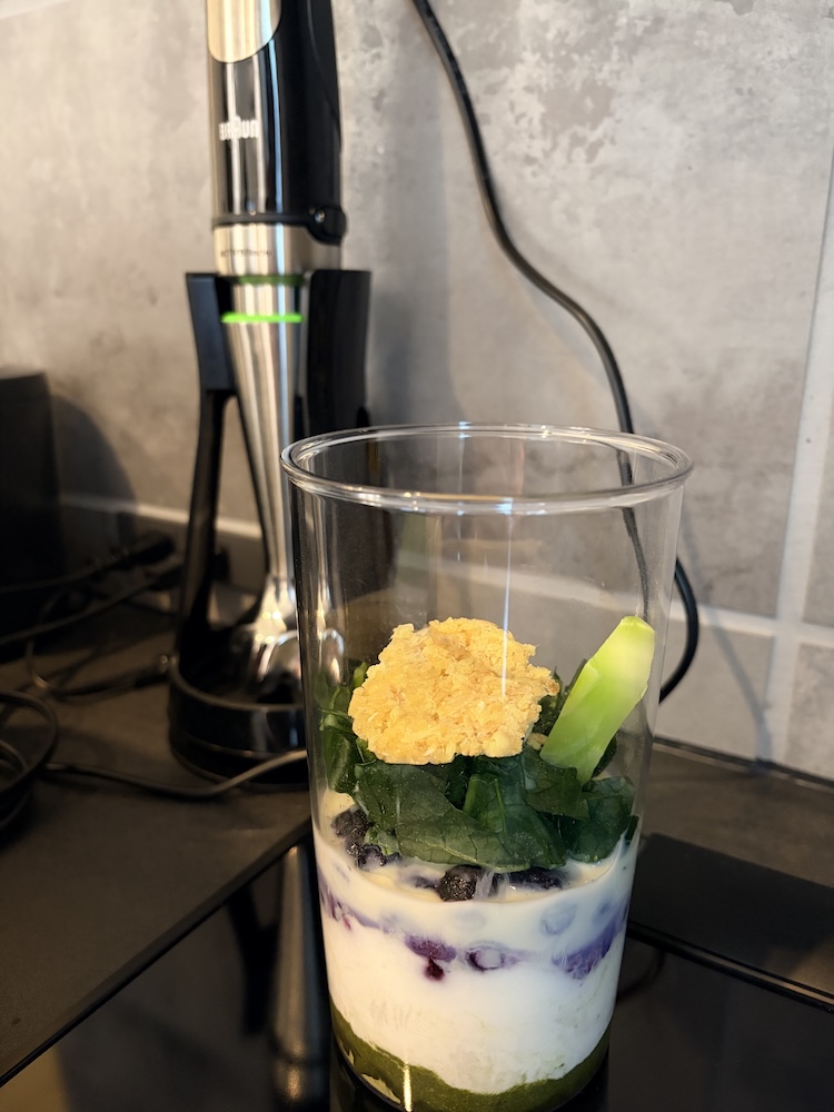 元々刃がついている所は別にミルが2種類ついてきたので、ミルを分解して爪を取り付け用と思っているのですが、何か気が乗らないのでまたブラウンのハンドブレンダー復活。最近はいつもこっちを使っています。ブレンダーの方が出来上がりが早いし。。。